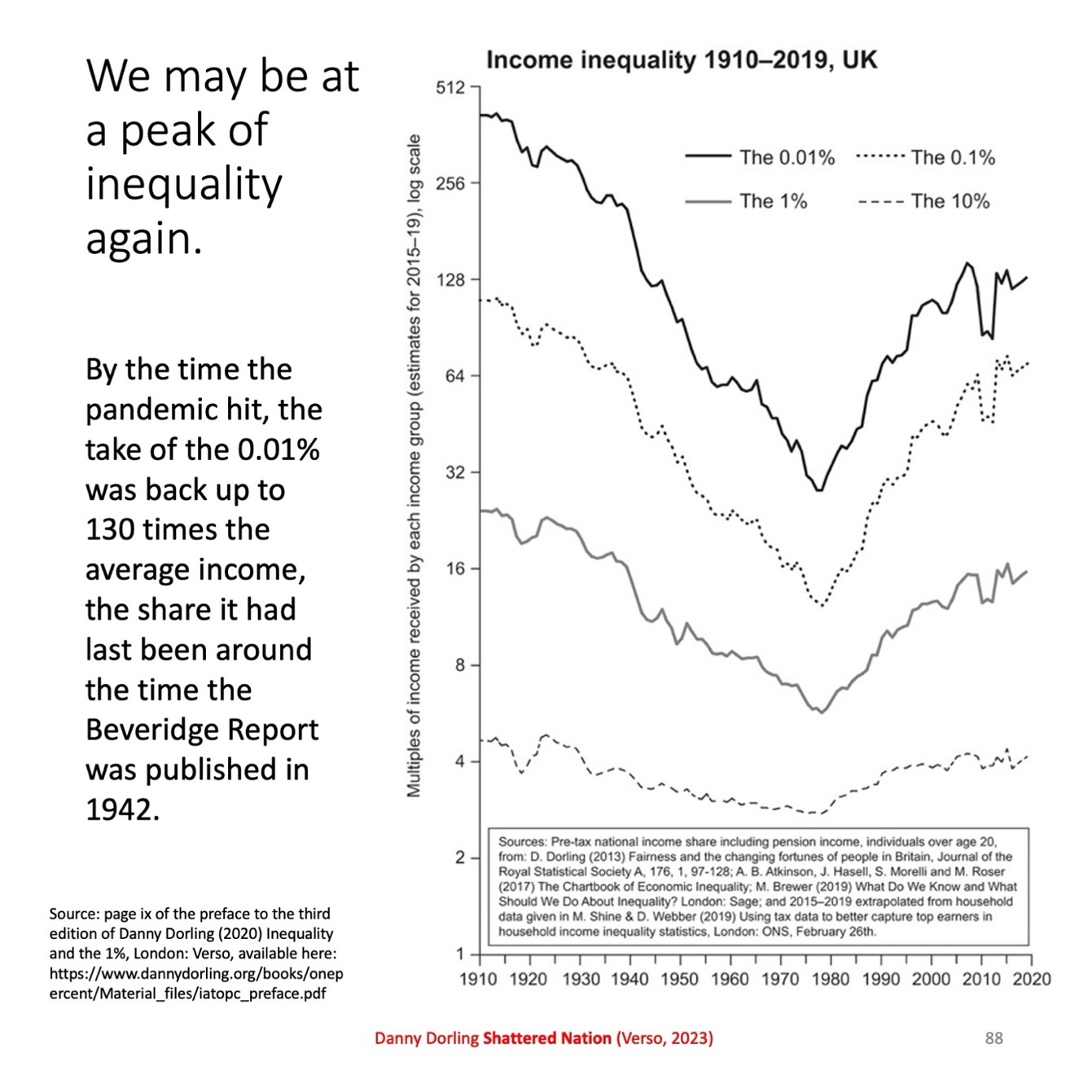 The rapid increase in income polarisation that occurred across the UK from the 1970s onwards meant that a job in the BBC became an ever more coveted aspiration for those families increasingly desperate that their offspring should stay in the top 10%. Joan Bakewell could appear on Late Night Line-up in the 1960s despite being the granddaughter of factory workers. In contrast, most of the intellectuals on screen today grew up in ‘the 10%’. This was a group that by the end of the 1980s came to take and spend 40% of all income each year in the UK. To move to London and live in London today, to work at the BBC now, usually requires a little ‘family money’.