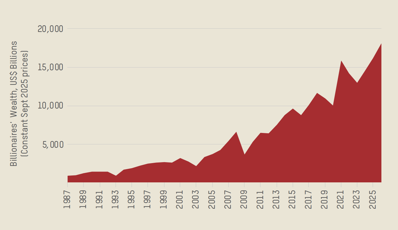 Figure 2: Billionaires’ Wealth 1987-2025, US$ billions (real terms)