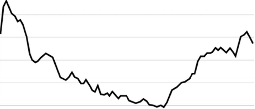 Self-reported health had been progressively declining year on year since 2010. In the years before 2010 up to 70% of the population were somewhat, mostly, or completely satisfied with their health and there was no downwards or upwards trend.